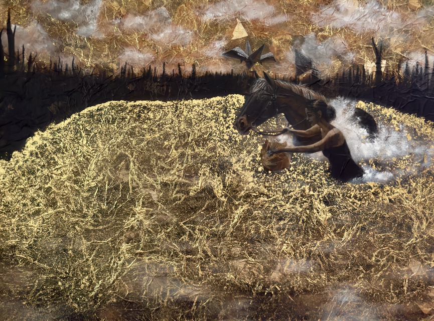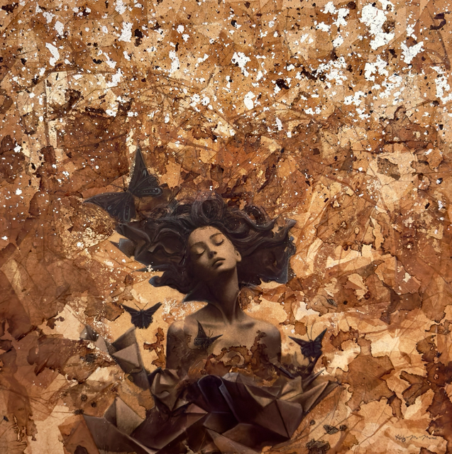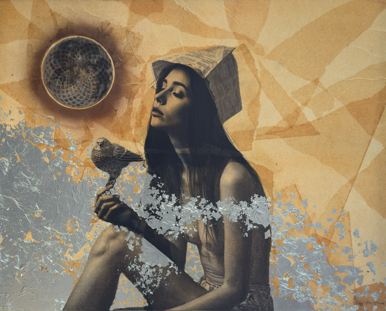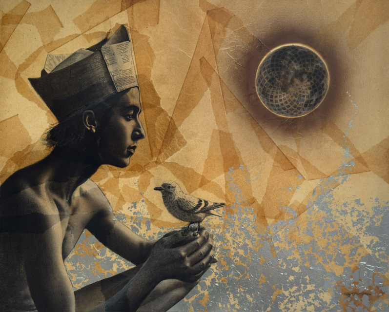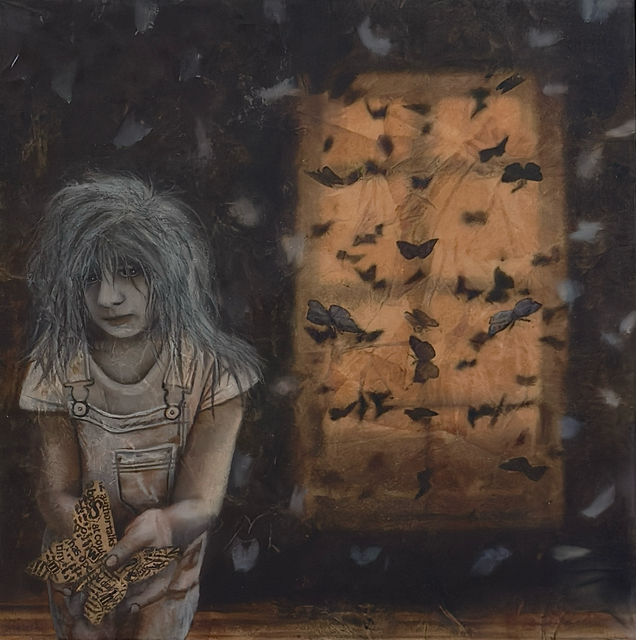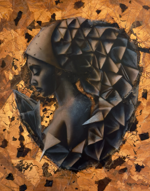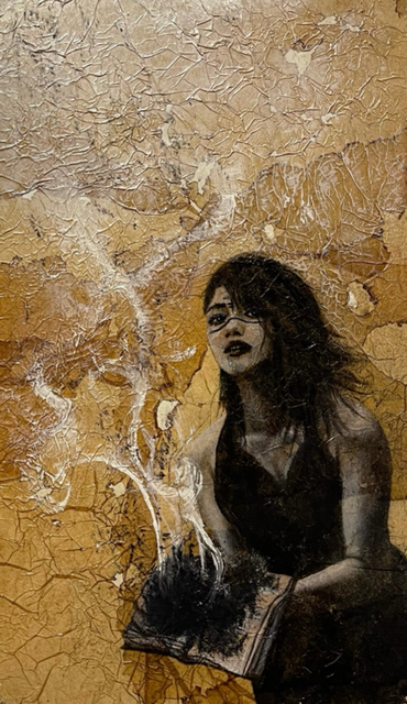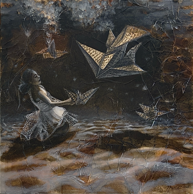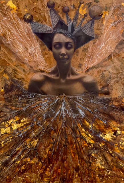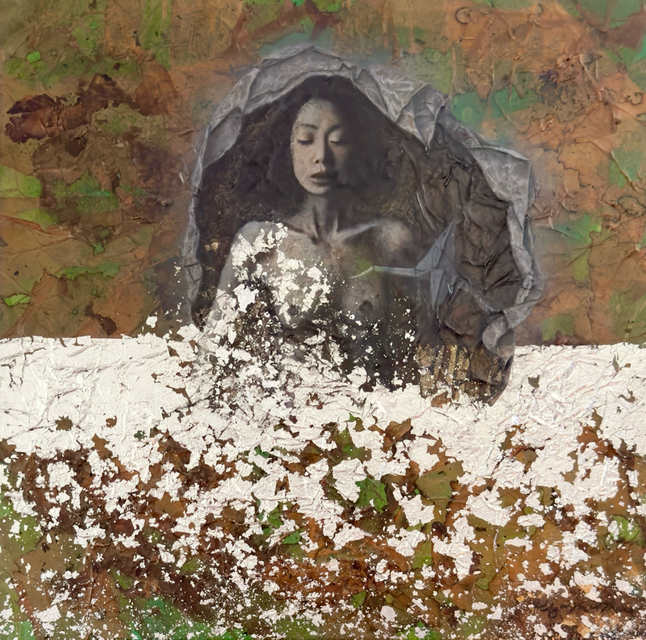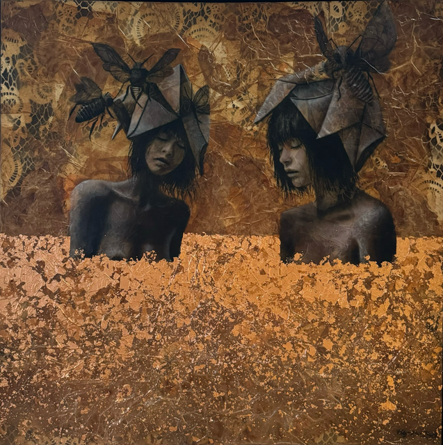 pastels/oils & silver leaf on cicada wing paper mounted on canvas