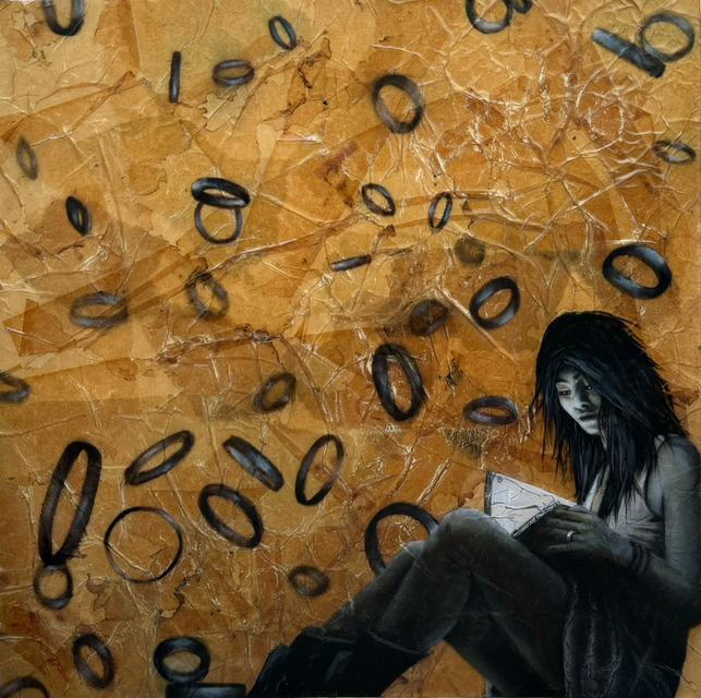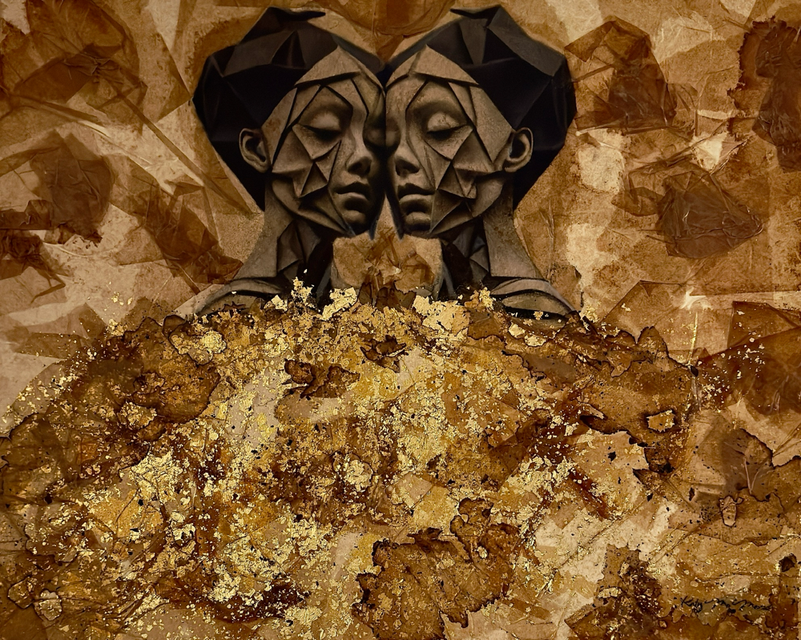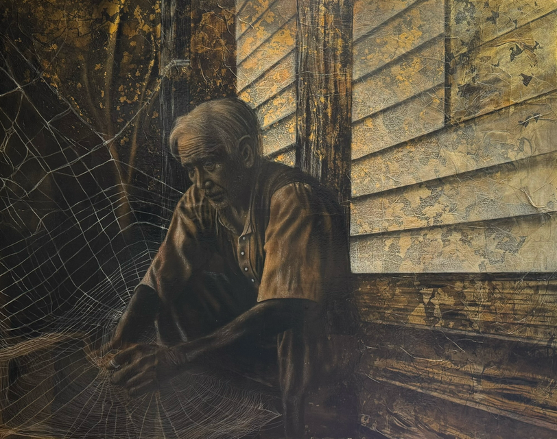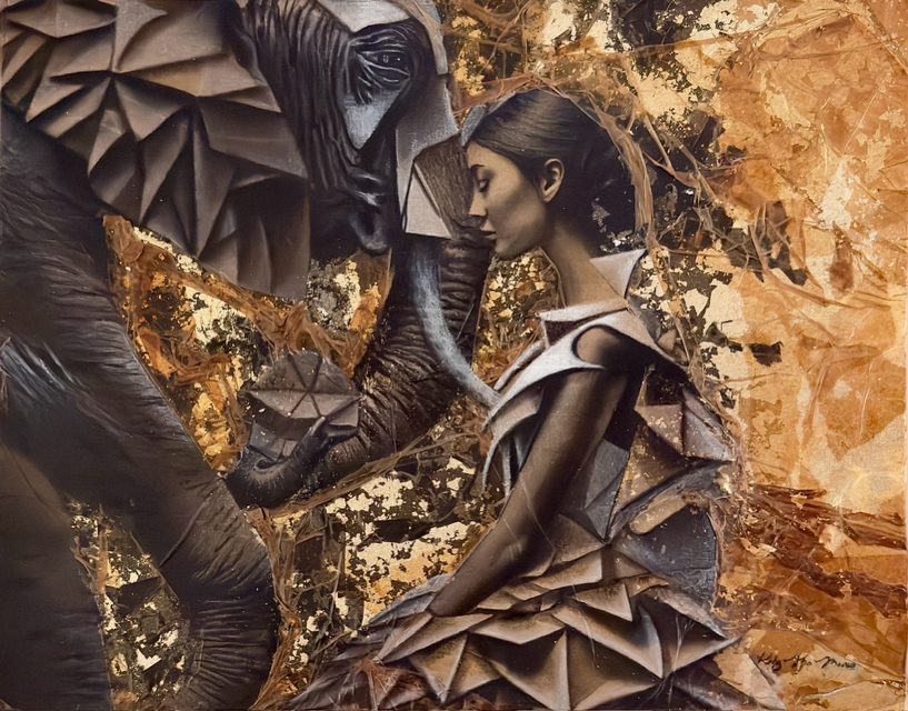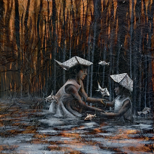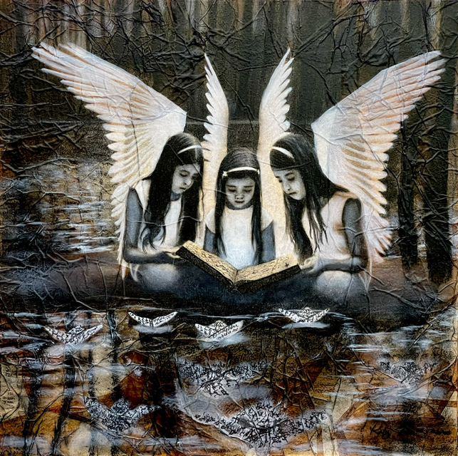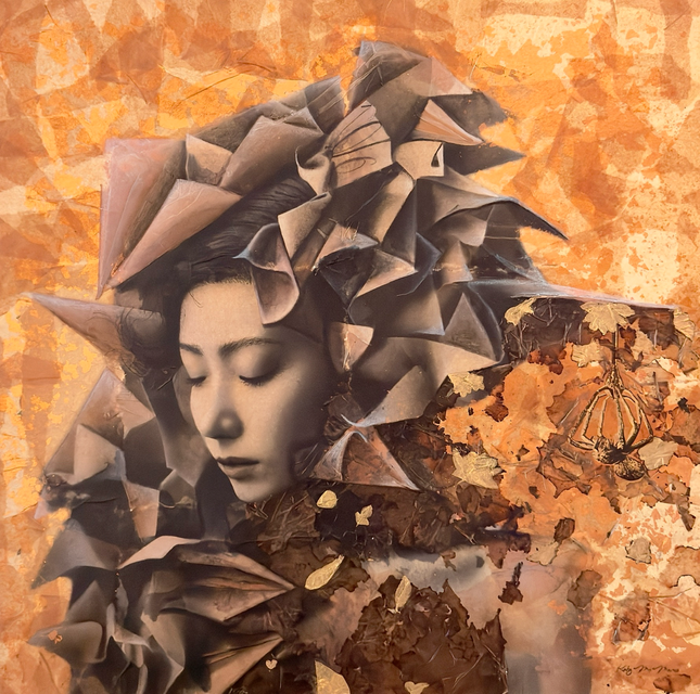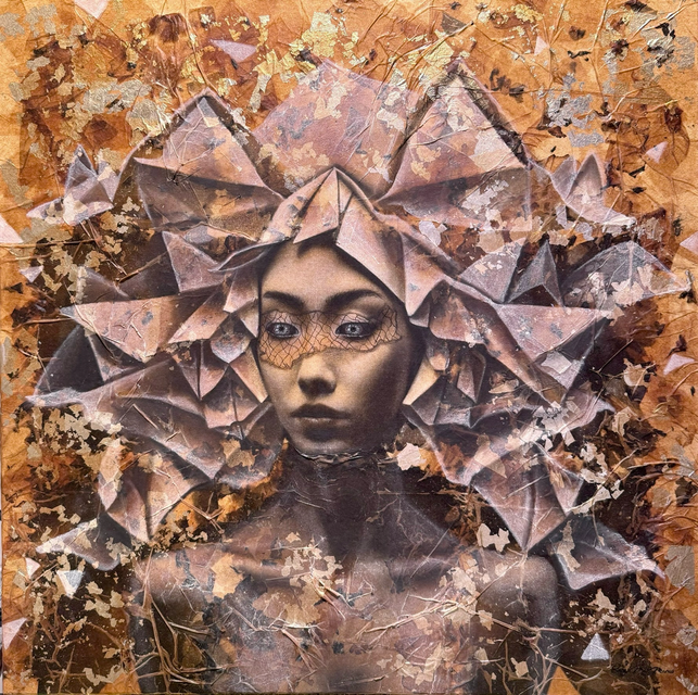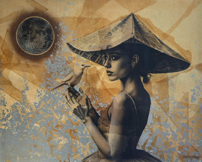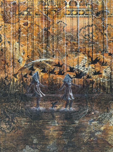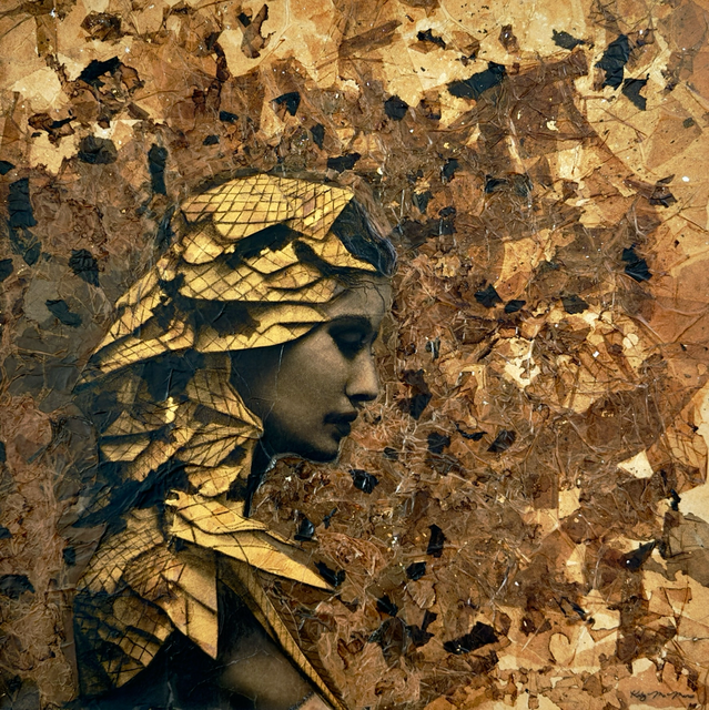pastels/oils & silver leaf on cicada wing paper mounted on canvas
